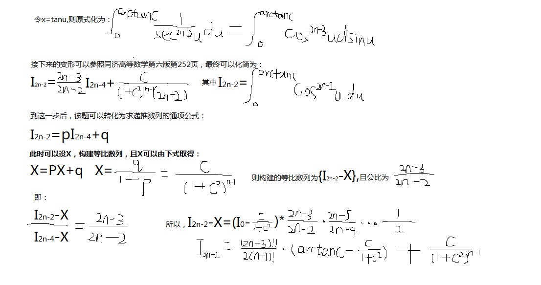 被积函数:(1+x^2)^(-n) 积分下限:0 积分上限:c c为小于0的常数