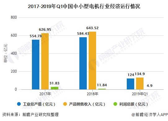 根据中小型电机分会发布的《2018年中国中小型电机行业经济运行情况及2019年工作重点》报告指出,2018年63家企业完成工业总产值584.4亿元,比上年增加29.65亿元,增长5.3%;产品销售收入达到643.52亿元,比上年增加16.57亿元,增长2.6%;行业实现利润11.84亿元,比上年减少20.00亿元,下降62.8%。