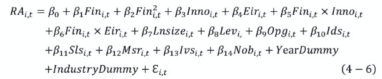 看到一篇文章,研究的是制造业企业金融化对企业经营业绩的影响,回归模型是: