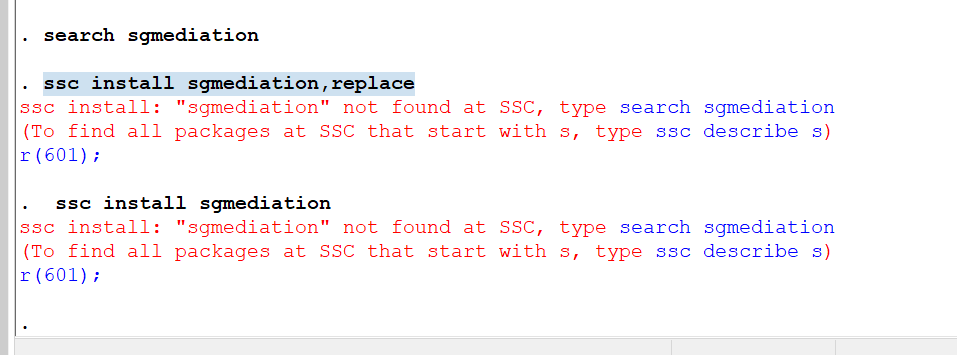 1245304648 发表于 2020-12-22 20:59 我已经安装在C/ado/plus/s下,并且用ssc install sgmediation,replace安装,但是依旧是出现r(601)的错误