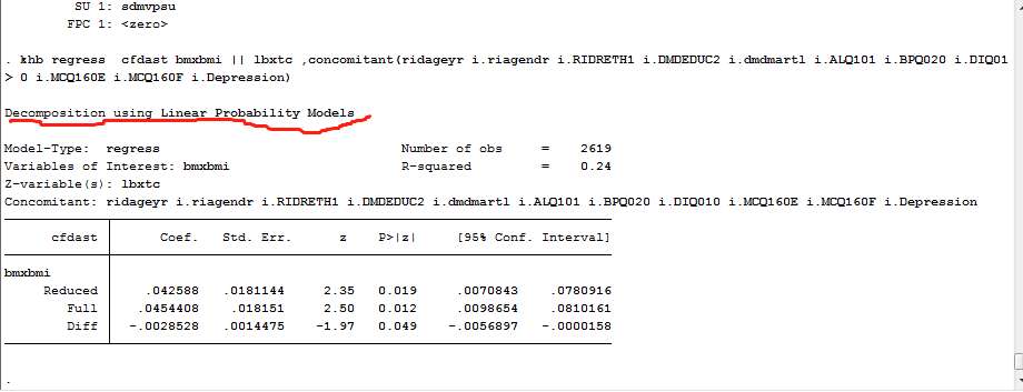 统计小白求指导 发表于 2020-5-17 16:55 khb的一篇文章里边给的例子是logit的,但是文章说regress也是可以的,我输入khb regress y x ||M,concomit ...