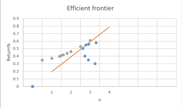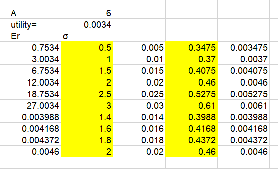 这里风险系数A已经取到6了,但是整个图看起来比较怪异,曲线与CAL明显相交,得不出比较合适的资产配置比例....