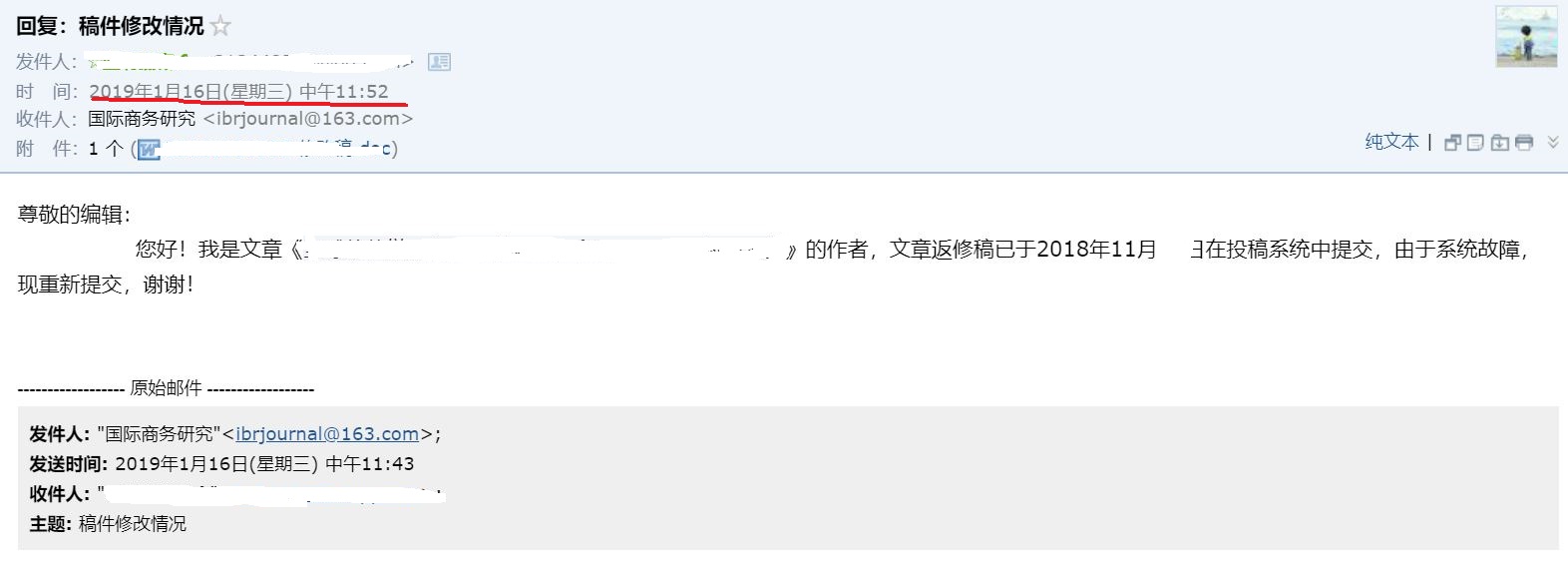 下面说说作者奇葩的投稿经历(以下投稿经历均有往来邮件为证):作者投稿时间为:2018年11月20日,第一次退修时间为:2018年11月26日;第一次修回时间为:2018年12月2 日通过期刊官网系统提交,而且该期刊发来的邮件明确说明要在官网系统提交返修论文,然后在2019年1月16日作者收到邮件,稿件即将超期!!! 后电话确认,期刊网站出故障,无法收到返修稿件??????????????????????我当时已经被期刊编辑的效率折服了,既然是期刊官网出现故障,为何在出现故障后未及时通知作者,导致白白浪费一个月的时间??作者将返修稿重新提交时间为2019年1月16日。期间再无收到任何消息,作者在这期间多次打电话至编辑部询问,均未接通电话,直至2019年4月23日,编辑部电话终于打通,此时距作者投稿时间已经超过五个月了,期刊官网明确表示,三个月内会将最终录用结果给到作者,结果当天编辑部老师给我的回复是,“现在编辑部比较忙,稿件也比较多,你愿意等的话就等,不愿意等就直接发封邮件到编辑部邮箱进行退稿”?????当时听到编辑部老师的回复,我瞬间火了,期刊明明说的是三个月之内会给到录用结果(即录用通知),结果,经过了五个月了,作者仍未收到录用结果,并且编辑部老师的回复居然是你愿意等就等,不愿意等就撤稿???实属气愤,在作者的怒怼编辑的情况下,当天中午收到第二次论文退修邮件,并且编辑部邮件中告知作者月底主编会确定是否刊用。(该部分电话均有电话录音证据,原以为怒怼编辑之后,当天会被编辑部直接退稿,结果却收到退修通知),作者第二次修回时间为:2019-4-25,紧接着收到第三次退修邮件,时间为:2019-4-29,第三次修回时间为:2019-4-29。在19年五一假期之后,作者再次打电话询问录用结果,编辑部老师回复为主编确定录用,但当作者提出能否提供录用证明时,编辑回复称,编辑部不会提供任何录用证明,并且强调期刊见刊周期最少一年以上,依旧是你愿意等见刊就等见刊,不愿意等就退稿?????由于作者当时已经有两篇文章录用,已经不影响毕业,而且当时忙于实习,因此也没再管这篇论文。