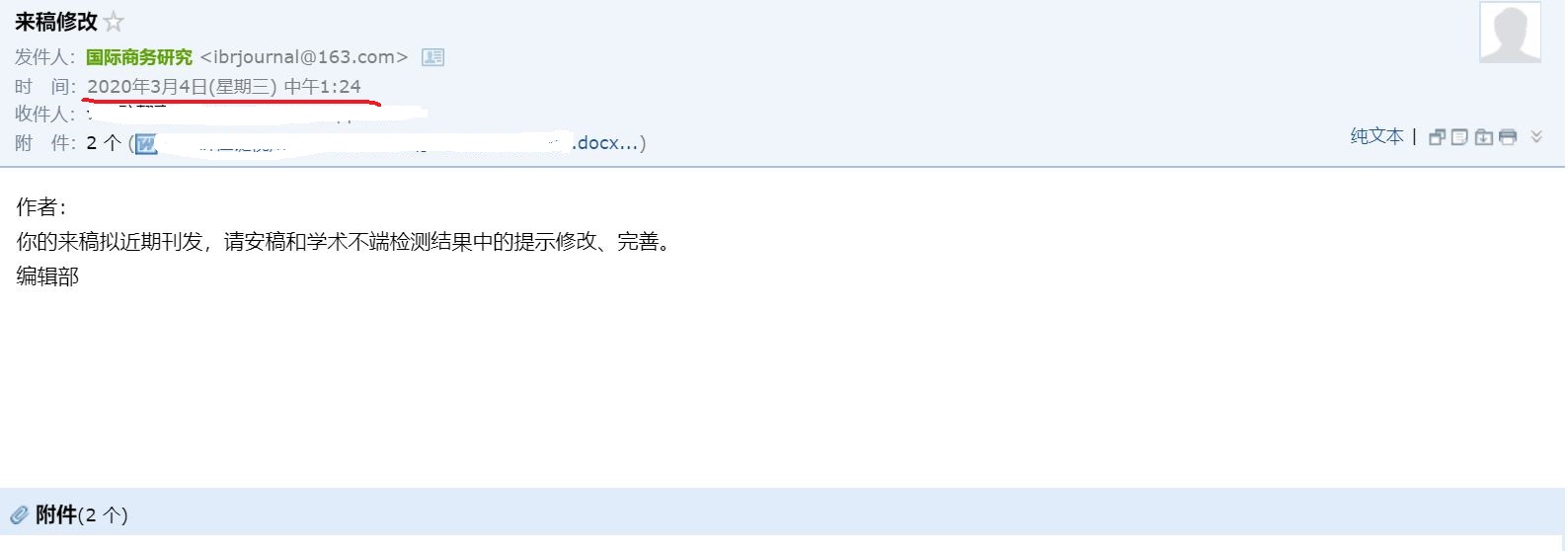 对于本次投稿经历,作者对该期刊的不负责任感到非常愤慨,投稿时告知作者审稿周期为三个月,在审稿超期的情况下,作者催促,编辑却抛出“愿意等就等,不愿意等就退稿”的言语,极其不负责任!!!并且口头告知是否录用,坚决不提供纸质录用通知,有种店大欺客的赶脚。编辑联系作者的方式:从期刊官网到邮件联系,直到最后没有任何署名的短信轰炸,让作者感觉该期刊没有任何规章制度可言。该期刊也从最初的C扩+北核,变成了现在的仅仅北大核心,如此没有规则,对作者毫不负责的期刊沦落至此,也情有可原!这也是小硕记录的最后一篇投稿经验,最后附上相关往来邮件,谢谢各位!