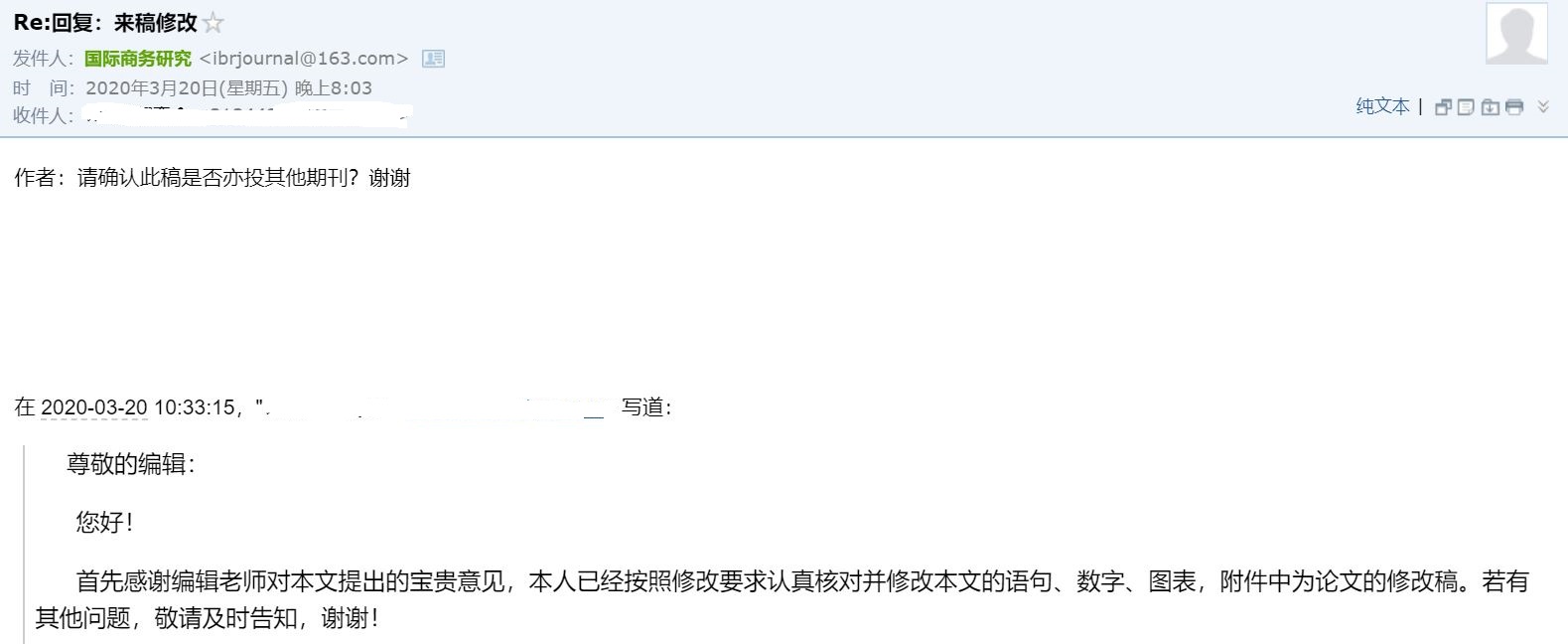关于《国际商务研究》的投稿经验是我小硕生涯写的最后一篇投稿经验,也是唯一一篇控诉帖,记录一下我投该期刊的糟糕经历,以下投稿经历均为本作者真实经历,如有雷同,纯属巧合(该投稿经验含有些许不满情绪,如有不适,作者在这里先道声抱歉)。