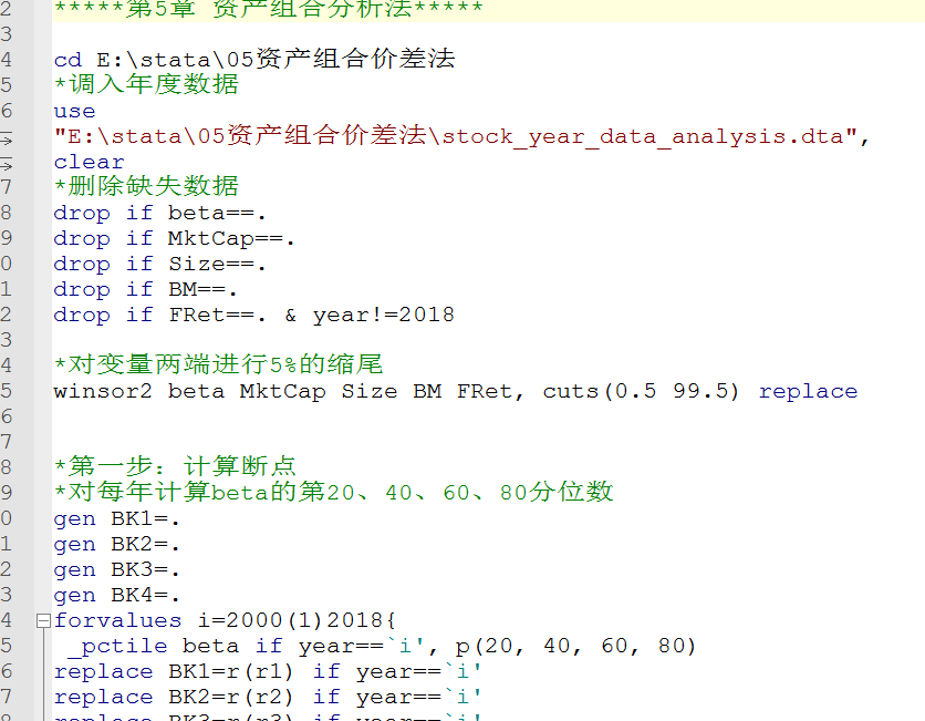 实证资产定价的主流方法就是Bali、Engle和Murray的著作《实证资产定价:股票横截面收益》一书中所采取研究实证资产定价的方法。本人打算在接下来的一段时间里,把本书的全部方法都用stata代码来实现。首先奉上,本书第五章的资产组合分析法。附件有数据和stata代码。
