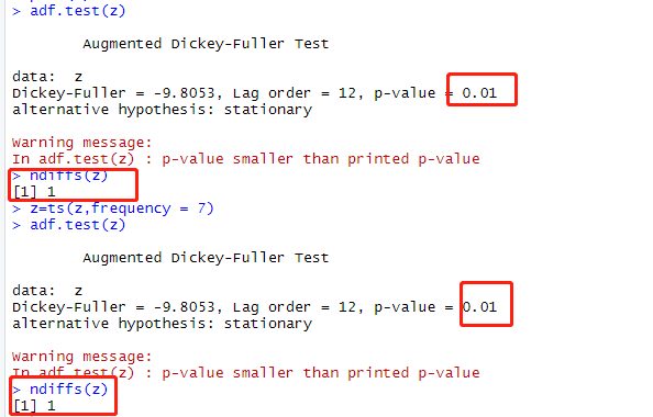 megapanda 发表于 2020-5-21 15:13 ndiffs默认使用的是kpss检验。 如需指定ndiffs使用adf检验,请在参数中添加 test = "adf"
