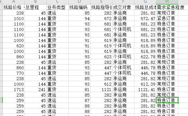 线路价格(不含税)