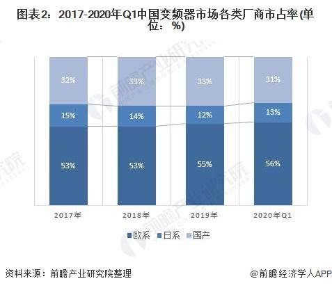 在国内变频器市场中,以西门子为代表的欧系品牌在技术和品牌认可度上明显超越日系和国产,目前欧系品牌变频器仍然占据主要地位,2020年一季度欧系品牌占比达56%,日系和国产则分别占比13%、31%,国产品牌主要集中在OEM市场,在产品技术实力和品牌认可度上仍有较大的提升空间。