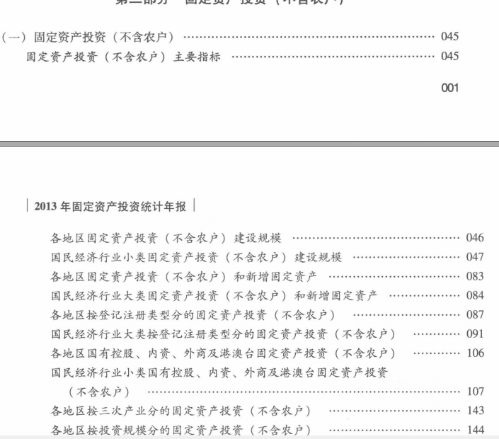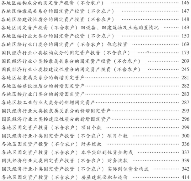 《中国固定资产投资统计年鉴2014》没有公布,而它和2013年固定资产投资统计年报的目录基本一致(具体见下图),所以在此提供2013年固定资产投资统计年报。