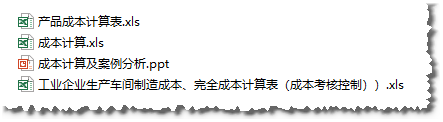 1.产品成本计算表.xIs 2.成本计算.xls 3.成本计算及案例分析.ppt 4.工业企业生产车间制造成本、完全成本计算表(成本考核控制))xls