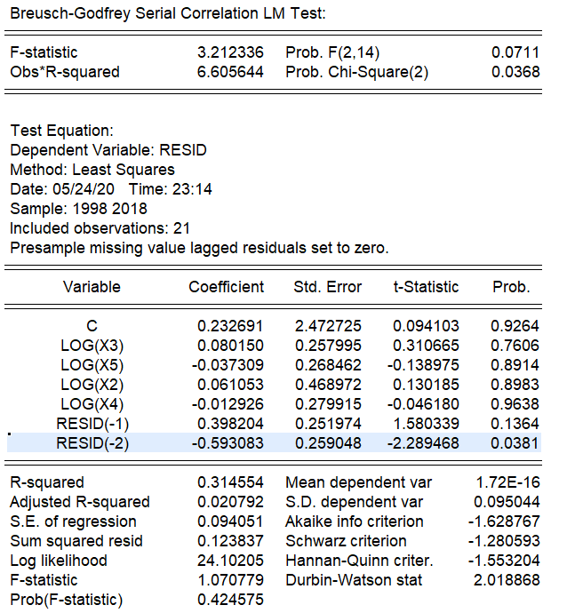 请问这个能判断存在二阶自相关吗?一阶自相关是不存在吗?LM判断不了是否存在自相关。