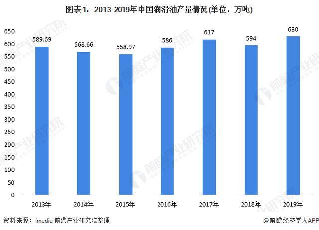 据imedia数据显示,2013-2019年,整体而言,我国的润滑油产量较为稳定,整体上呈提升趋势。2019年,我国润滑油产量约为630万吨。