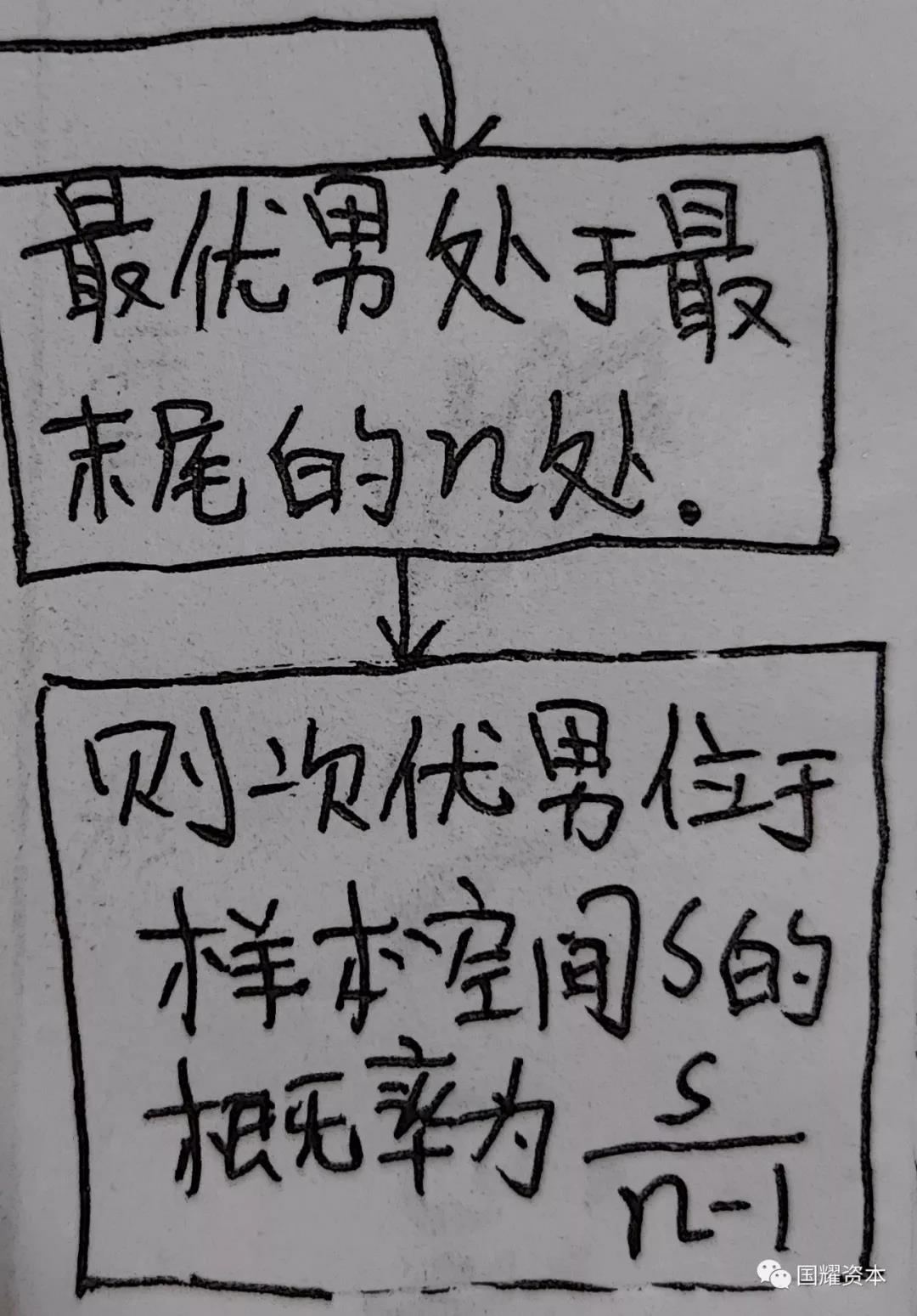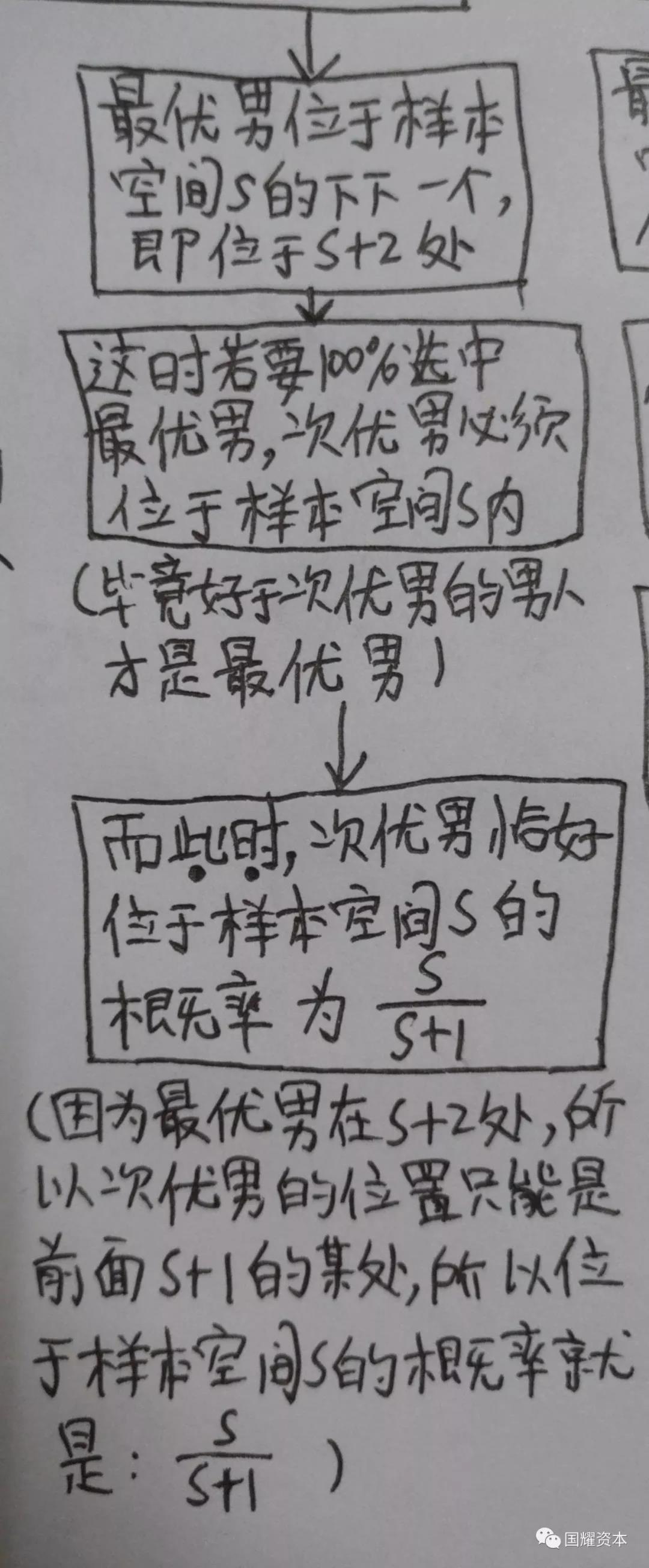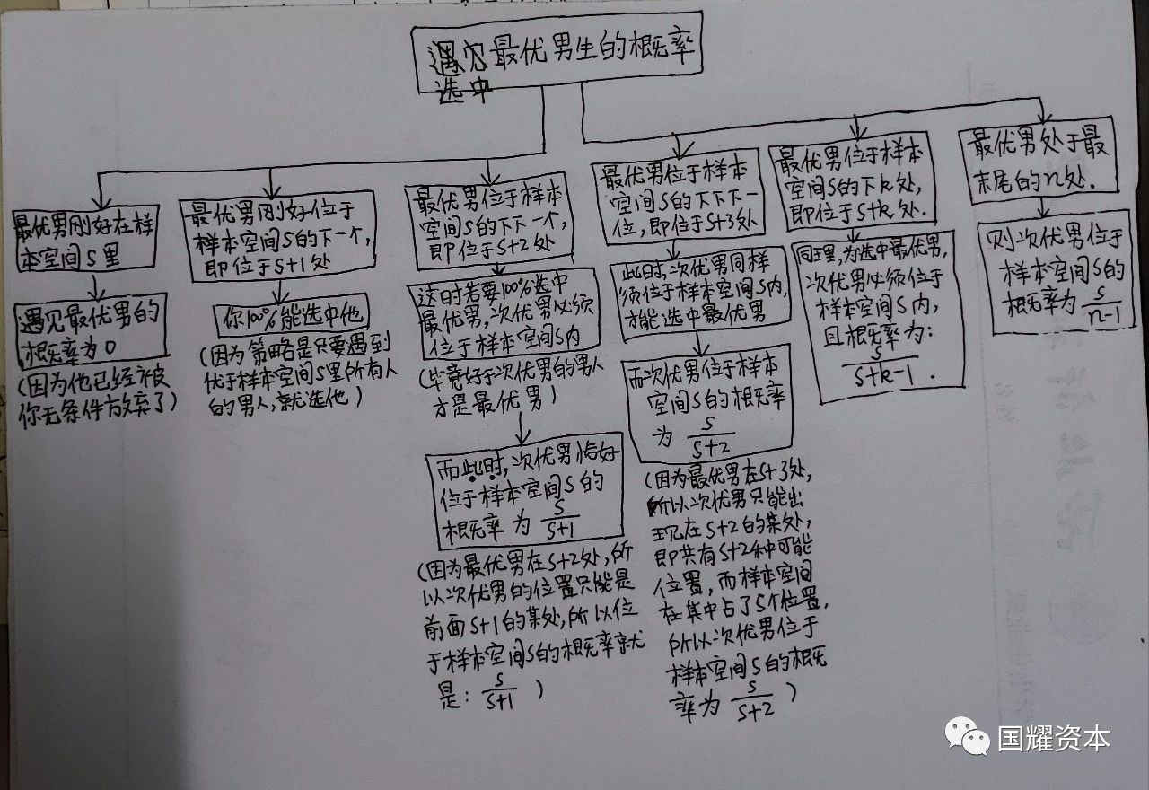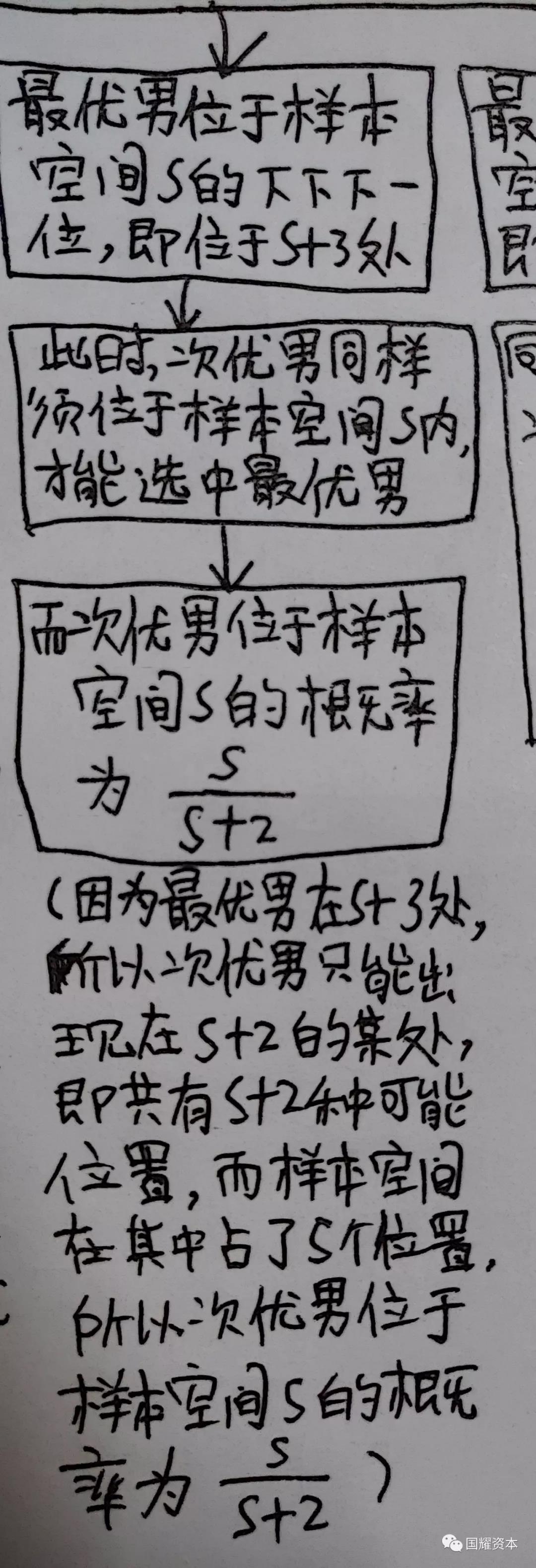 1,最优男刚好位于样本空间s里,因为样本空间里的男生你已经全部无条件放弃了,所以这种情况你选中最优男的概率为0。
