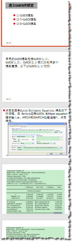 建立Garch模型族在EVIEWS中的操作步骤与方法,T-Garch,E-Garch,TGarch,EGarch