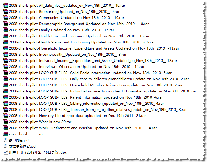CHARLS-2008,2011,2012 原始数据及数据整理所需的相关资料.rar