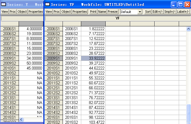 下面利用EViews建立一个周期为半年的工作区,我设定时间范围为2006-2015,