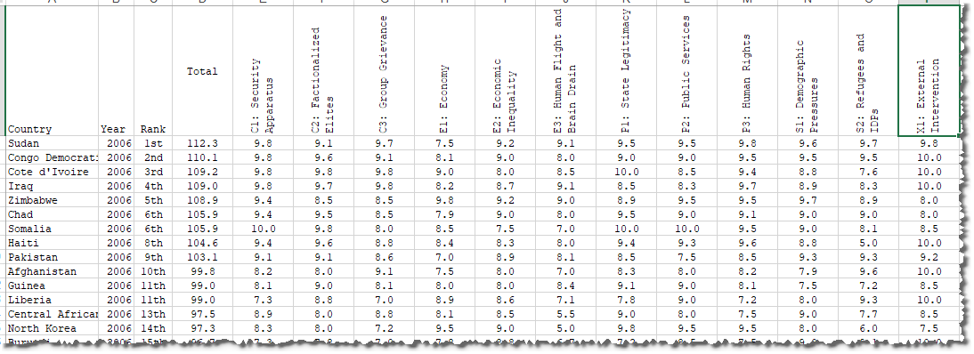 2006年全球FSI排名和评价指标