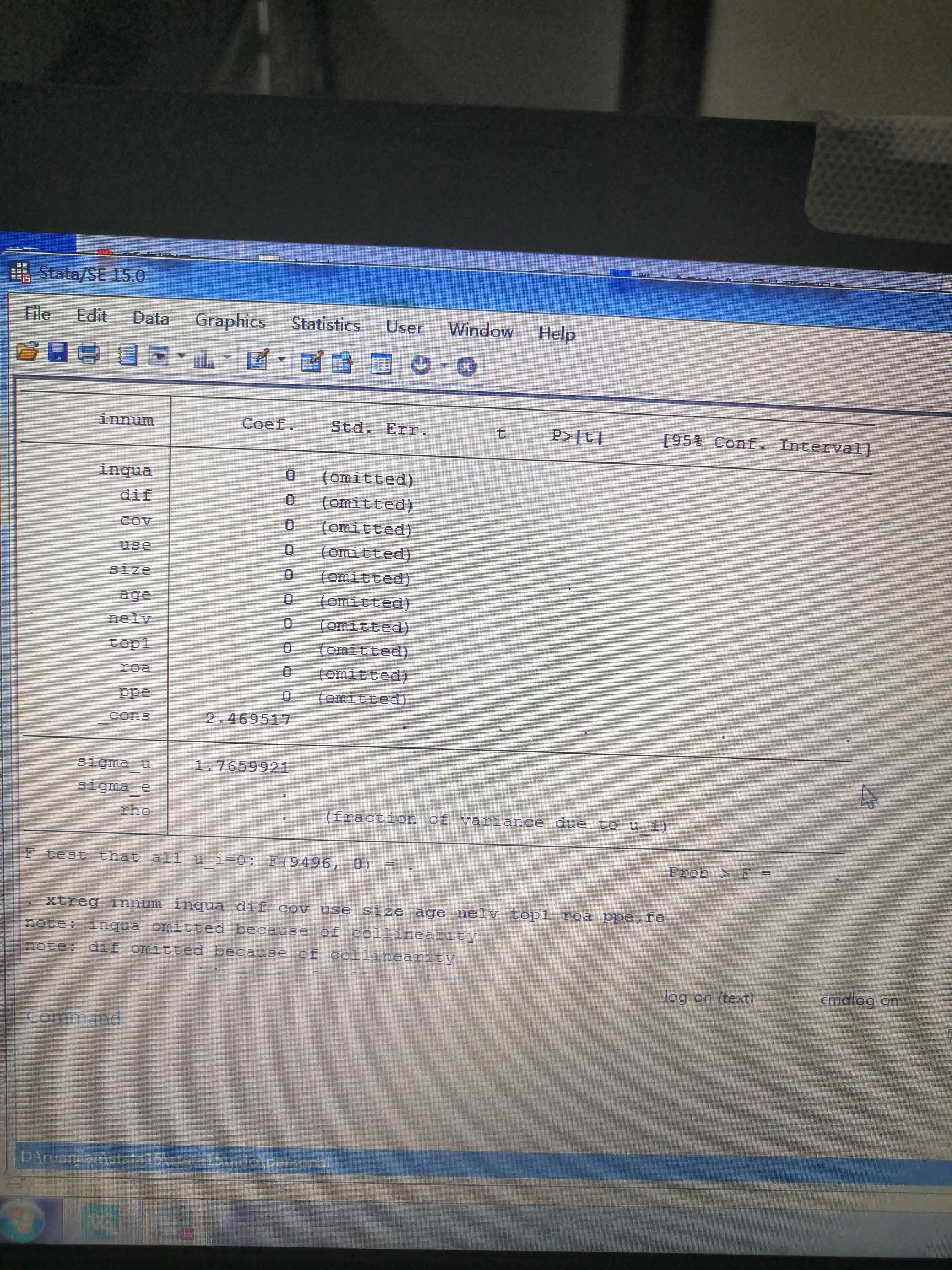 [求助]Hausman检验出现“估计的随机时间效果方差为0”警告