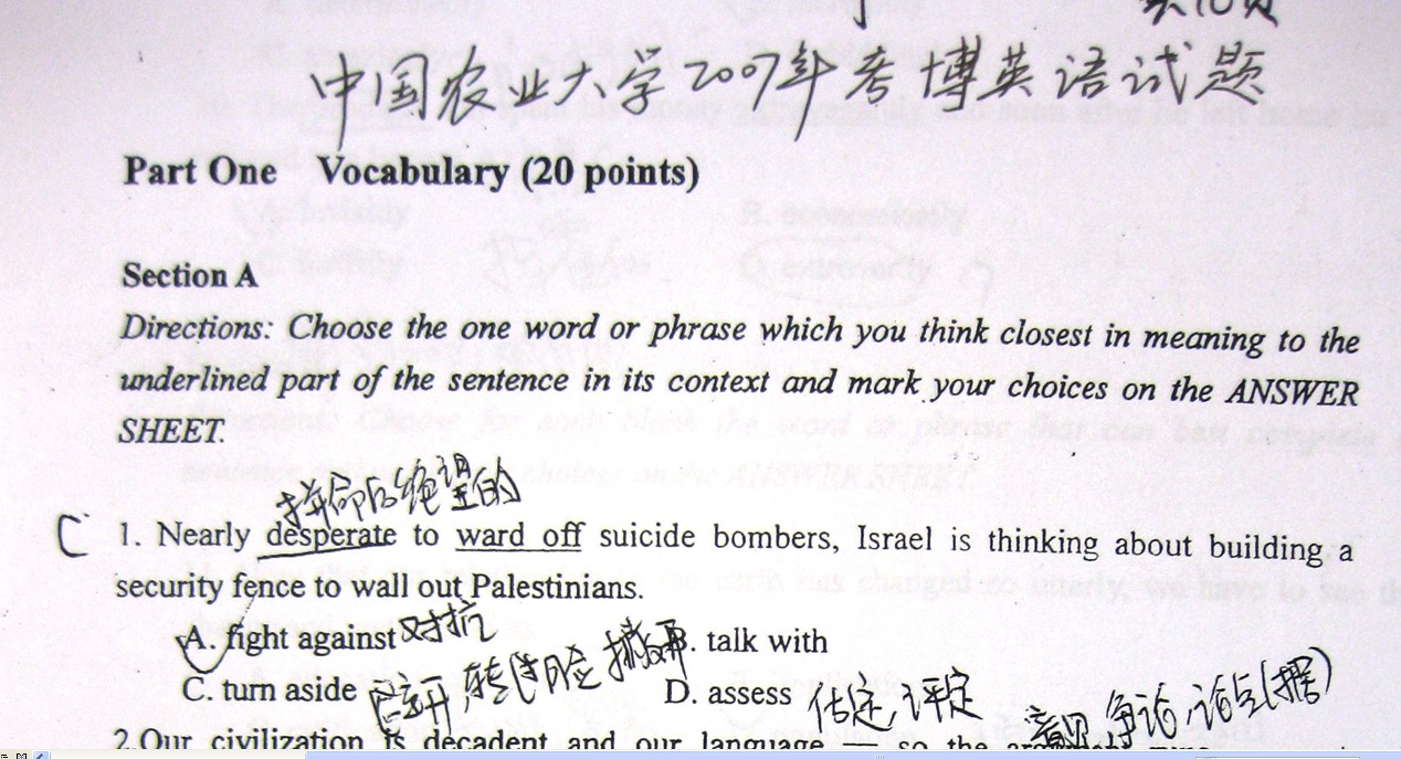 中国农业大学考博英语1999—2007(附件过大,所以无法打包)