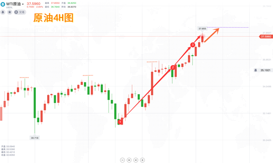 对于原油这个品种来说,趋势一旦形成,操作上只有顺势,抄底逃顶是不明智的选择,此前跌至负数还记忆犹新,而自6.5涨至当前的37区域,也不过月余!在趋势过程中原油不会给到太多的回调,而是一路上涨或者下跌!
