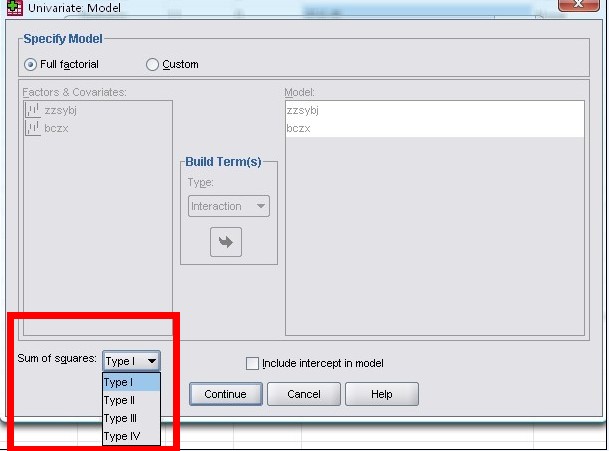如图中的 sum of square 的类型麻烦问一下:SPSS中这些类型的平方和有什么具体的区别么?一般系统默认的是type3,那哪些情况应该用其他的类型啊?