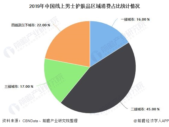 小镇护肤品购买渠道有限,因此小镇型男更倾向于线上购物。四线及以下城市是男性护肤的第二大市场,且消费人数和消费金额增速高于其他城市。