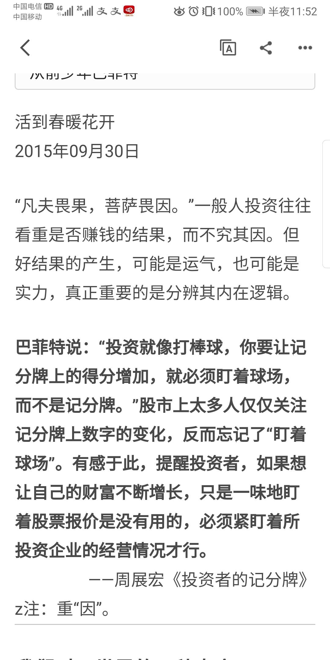 真巧我也看完了,一个投资家的20年,我分别看完两版,还有之后的文章在公众号和金融家杂志上看完了,