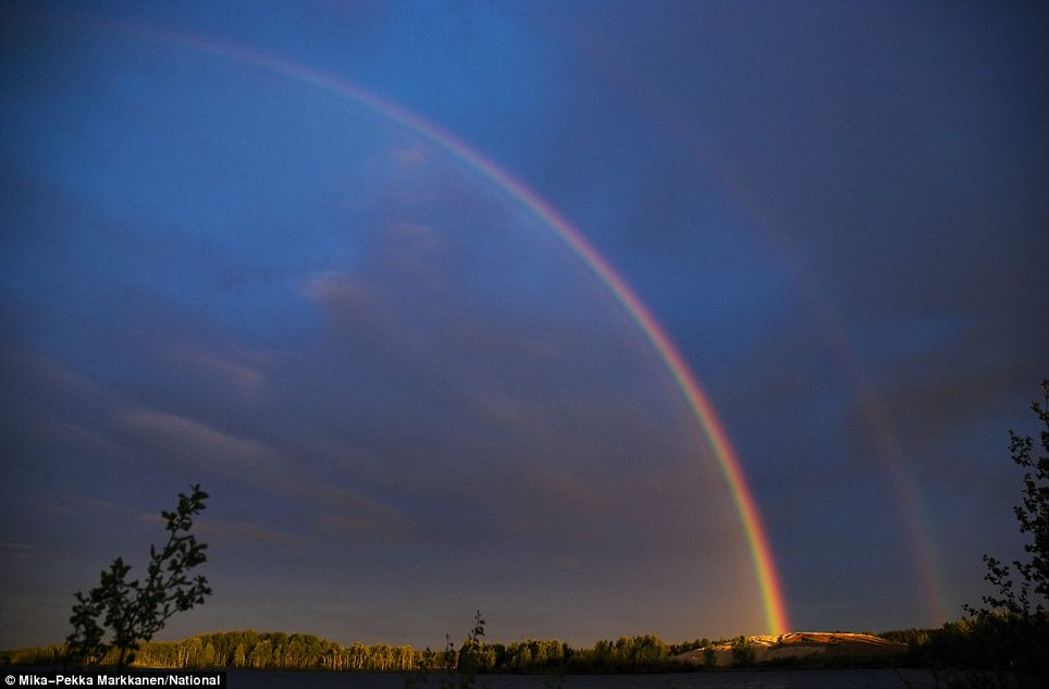 :Somewhere over the rainbow: This picture was taken in northern Finland, where the summer sun never sets and the light is still strong enough to form a rainbow in the middle of the night