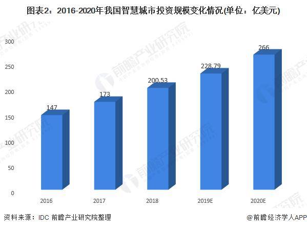 随着中国政府陆续开展和推广智慧城市试点工作,智慧城市相关的政策红利不断释放,同时吸引了大量社会资本加速投入。根据2020年2月IDC最新发布的《全球智慧城市支出指南》,至2020年,中国智慧城市投资市场支出规模将达到266亿美元,是支出第二大的国家,仅次于美国。