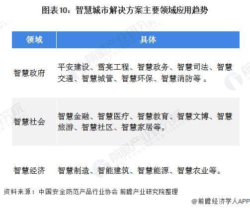 智慧城市的未来趋势发展上,2020年6月,中国安全防范产品行业协会发布《关于开展“智慧城市”优秀创新技术及解决方案评价推荐工作的通知》,拟组织评价推荐一批“智慧城市”优秀创新技术及解决方案,其鼓励解决方案应具备超前领先的架构设计,形成完整的技术产品、平台软件、运营服务等系统功能,主要应用领域多样并更加细分,智慧政府包括平安建设、智慧司法、智慧城管等。智慧社会包括智慧金融、智慧旅游等。