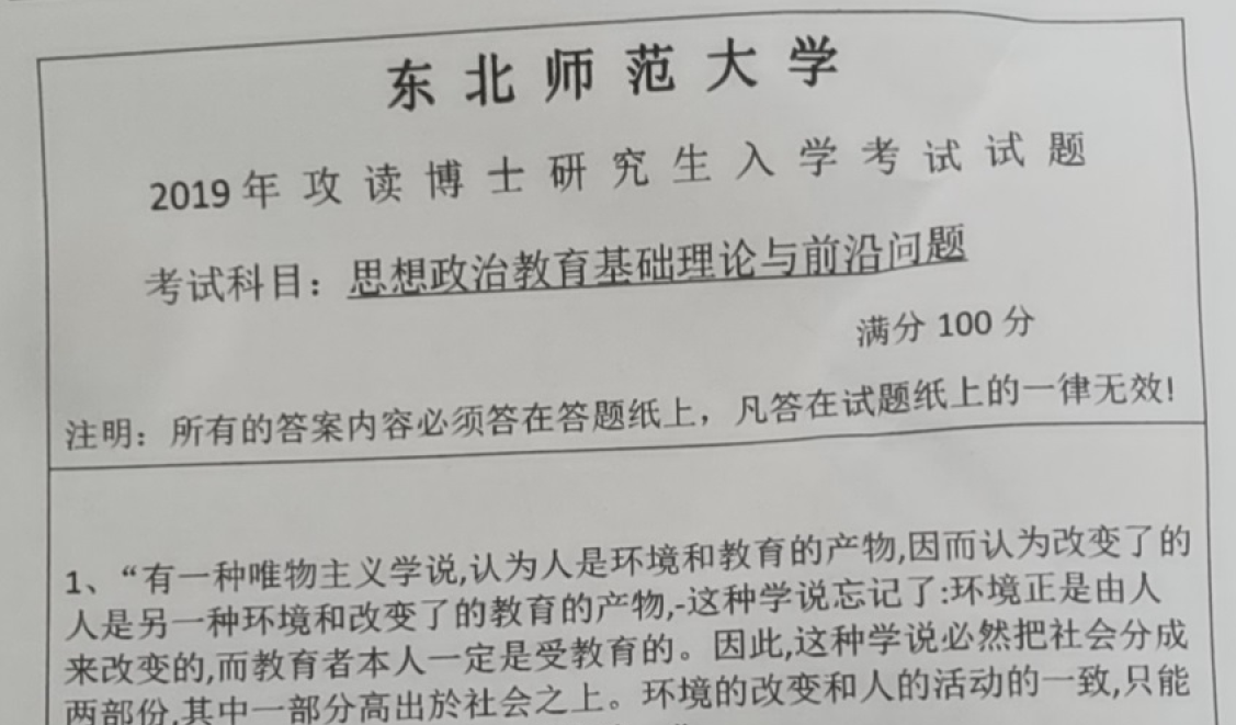 2019年东北师范大学思想政治教育基础理论与前沿问题(审核笔试题)考博真题考博试题