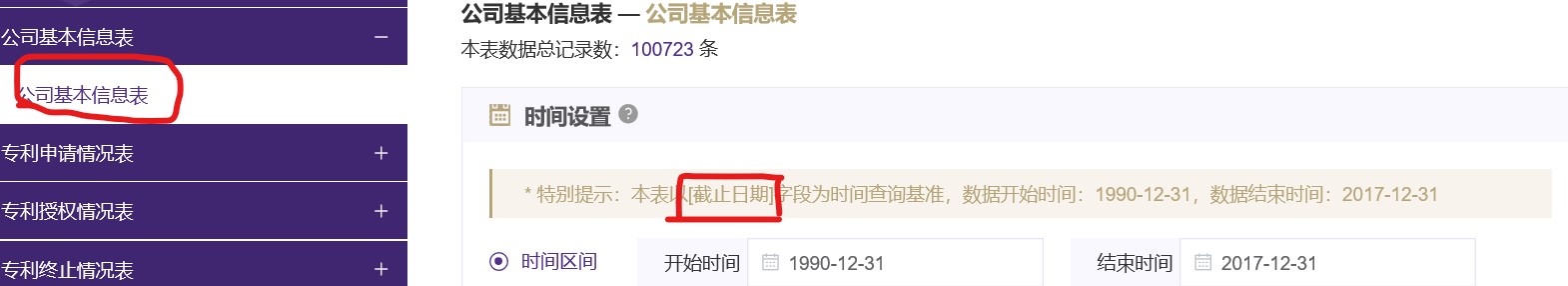 求助求助!公司基本信息表里的那个截止日期是什么意思?如果我研究的是2010-2017年的高新技术制造业及关于该行业的专利数量,那时间区间该怎么选啊?上面都是截止日期
