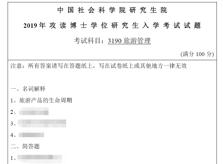 2019年中国社会科学院3190旅游管理考博真题博士研究生入学考试试题.pdf