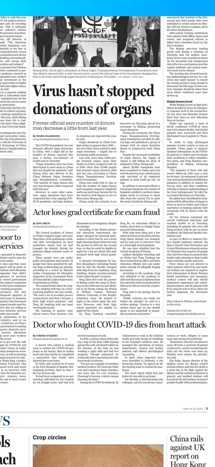 【学习笔记】疫情没有终止器官捐献。