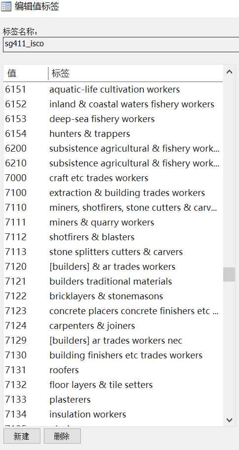 坛友们,求助求助,在数据处理过程中,比如CFPS有些变量是在处理数据中形成的,比如如下图所示,值很多,(比如职业、行业、慢性病这些,)要想自己分类归类,一个个看太麻烦,怎么把这些批量导出来,统一整理呢?
