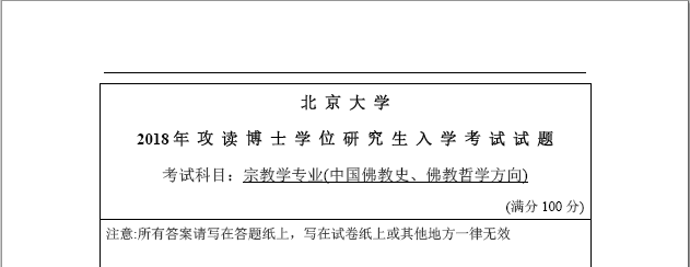 2018年北京大学宗教学(中国佛教史、佛教哲学方向)考博真题博士研究生入学考试试题.pdf