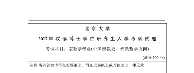 2017年北京大学宗教学(中国佛教史、佛教哲学方向)考博真题博士研究生入学考试试题.pdf