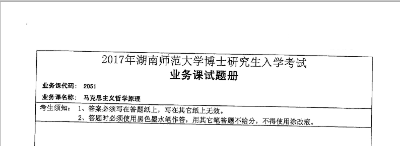 2017年湖南师范大学2051马克思主义哲学原理考博真题博士研究生入学考试试题.pdf