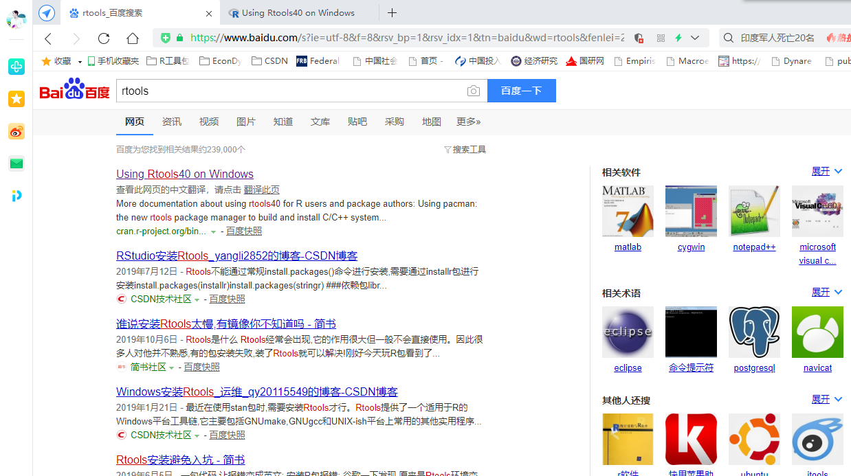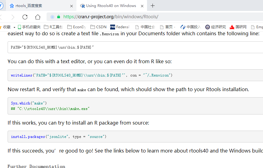 下面给出Rools40 的网站地址和命令语句。其实第一张图我已经给出直接百度Rtools 就打开链接了。自己下载,用迅雷比较快。