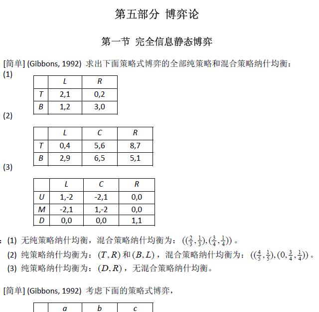 非常值得一看,不可错过啊!上财出品!分为5节,包括完全信息静态博弈,动态博弈,重复博弈等等