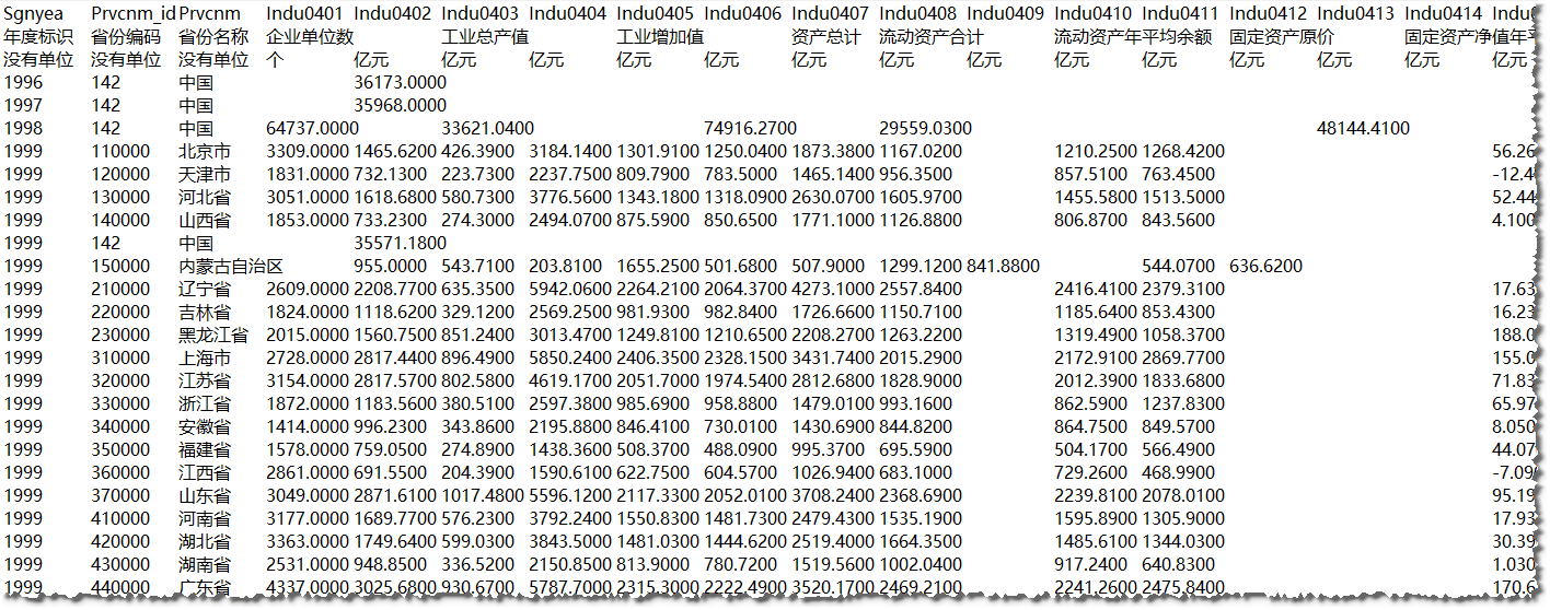 工业 — 分省份国有及国有控股工业企业主要指标,1996-2018,详细数据维度,请查看截图说明