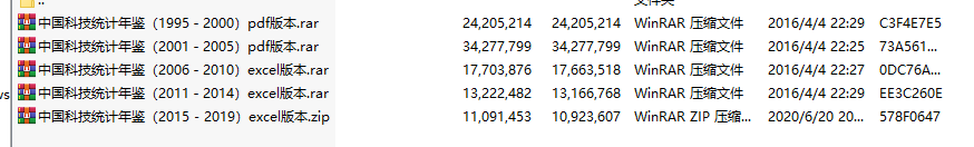 中国科技统计年鉴1995-2019