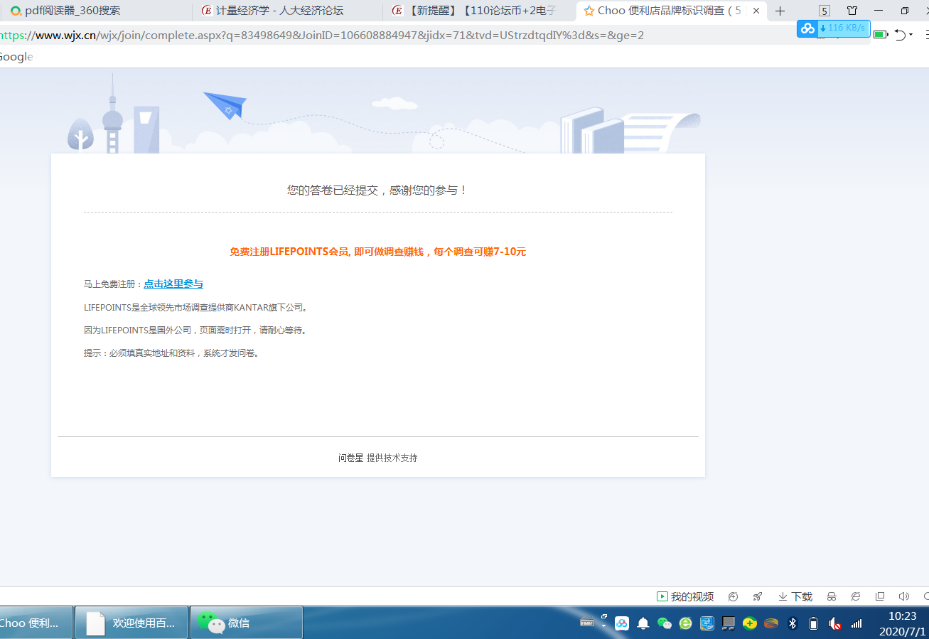 Choo便利店问卷填写完成截图