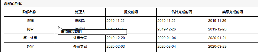 2019.11.26投稿,然后就是初审,通知交版面费,50元通过邮局汇款。