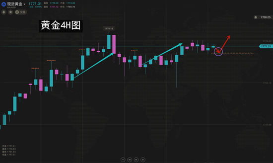 当前我们继续持有1769的多单,行情再次如期反弹,美盘继续持多看涨不变,首先要突破的就是亚盘压力1775位置,进一步则是日线前高1779压力!突破后将会是新的波段上涨走势。