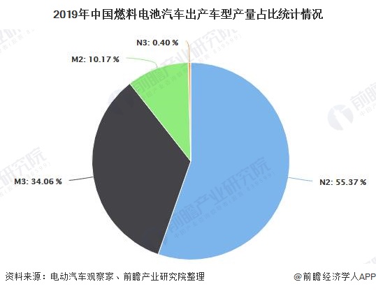 2019年中国燃料电池汽车产销量分别达2833辆和2737辆,其中N2车型产量占比过半,12月份国内FCV(燃料电池汽车)产量规模占全年一半左右。
