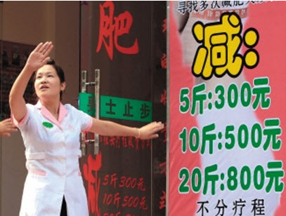 001:中国女性谈肥色变,减肥生意花招百出,甚至可以论斤计价。中新社