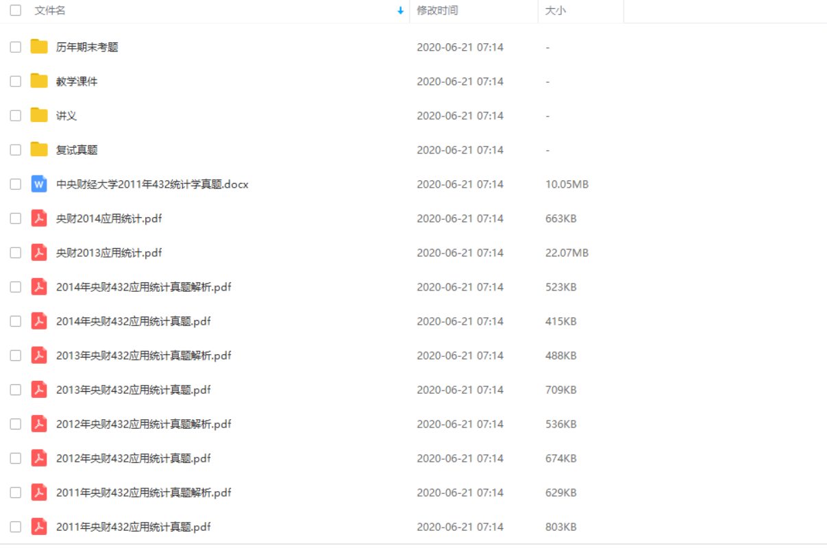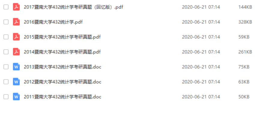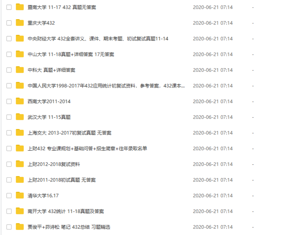 暨南大学432统计学2011-2017、上海财经大学432考研复习资料、中央财经大学432应用统计学2011-2014年初复试真题带答案、中山大学432考研复习资料、重庆大学432考研复习资料,以供学习参考。