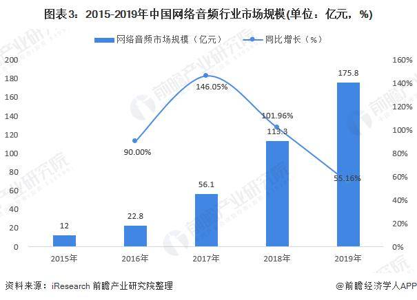 2019年,中国网络音频行业市场规模为175.8亿元,同比增长55.16%。随着音频业务的不断发展,越来越多的头部节目和精品内容被打造出来,并且内容的种类也愈加丰富,推动用户付费收入大幅增长。此外,音频内容的呈现模式和互动方式也愈发多样,音频直播模式的优化发展更是将用户打赏这一商业模式与音频行业更好地结合起来,并为之持续赋能。全场景生态的深化发展更是为整个网络音频行业带来更多想象空间,将推动网络音频行业市场规模进一步增长。